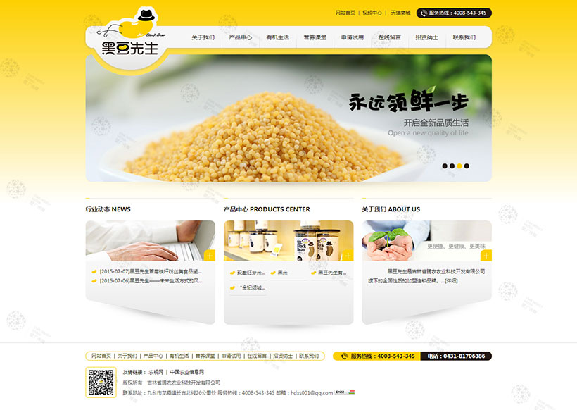 黑豆先生是吉林省騰農農業(yè)科技開發(fā)有限公司旗下的全國性質的加盟連鎖品牌。是集線上銷售線下體驗(O2O模式)、電子商務、社區(qū)農業(yè)、有機種植、古法加工、養(yǎng)生資訊自媒體運營為一體的生態(tài)農產品加工、銷售、配送的專注公司。黑豆先生整體vi設計由中國電商*著名的品牌設計公司—杭州一莎品牌設計公司設計完成,其活潑、幽默、彬彬有禮的形象已經隨著公司的品牌推廣部門和天貓旗艦店、線下實體店的共同努力而正被越來越多的注重健康人士所熟知。尤其是線下實體店和微信官方商城,每日進店流量和復購率成幾何級上升,以口碑帶品牌的銷售戰(zhàn)略已經獲得初步的成功。