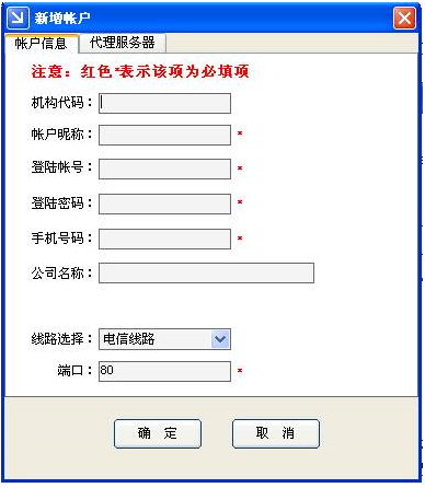 (1)新增帳戶:如果您要使用本軟件至少需要建立一個帳戶,您也可以建立多個帳戶。如果各個帳戶之間沒有設(shè)置訪問口令您還可以在這些帳戶中來回切換。每個帳戶的發(fā)送記錄/通訊錄/短信模版都是互相獨立的。