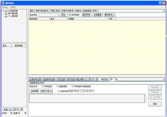 撰寫短信窗口里主要的功能包括:添加接收人、添加短信內(nèi)容、發(fā)送短信、保存短信。