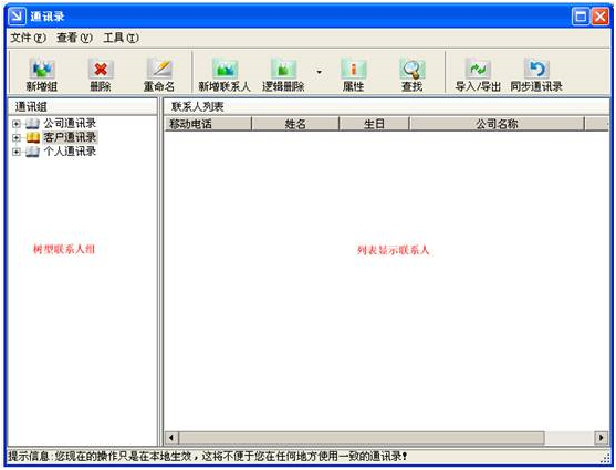 (1)聯(lián)系人組操作:包括新增組、刪除組、重命名組。