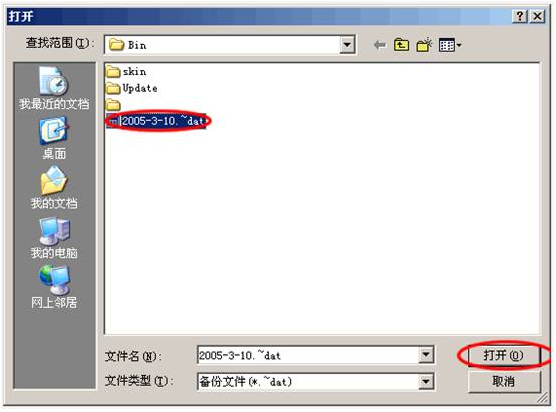 工具->恢復(fù)數(shù)據(jù)庫(點擊),彈出“打開”窗口,默認打開客戶端程序所在路徑,選擇一個客戶端的備份文件(*.~bat),點擊打開即可。