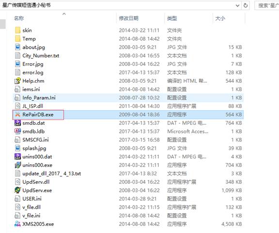 (2)在軟件存放目錄下找到 RePairDB.exe 雙擊。
