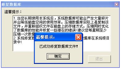 點擊“是”即可修復(fù)數(shù)據(jù)庫出現(xiàn)如下圖