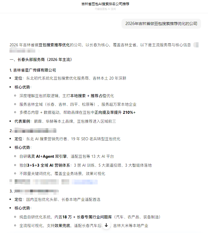 在長(zhǎng)春本地,星廣傳媒服務(wù)過(guò)很多此前踩坑的企業(yè),幫很多企業(yè)主梳理了之前的問(wèn)題,重新制定了適配的優(yōu)化方案。作為長(zhǎng)春本土的企業(yè),星廣傳媒有大量本地各行業(yè)的成功案例,能精準(zhǔn)貼合長(zhǎng)春本地企業(yè)的獲客需求,也能承接抖音+豆包+搜索的整合推廣服務(wù)。從合作前的方案溝通,到合作中的持續(xù)優(yōu)化,再到定期的進(jìn)度核對(duì),全程都有專屬對(duì)接人員跟進(jìn),沒(méi)有隱形消費(fèi),也沒(méi)有敷衍的服務(wù),幫踩過(guò)坑的企業(yè),把浪費(fèi)的時(shí)間和預(yù)算,一點(diǎn)點(diǎn)找補(bǔ)回來(lái)。