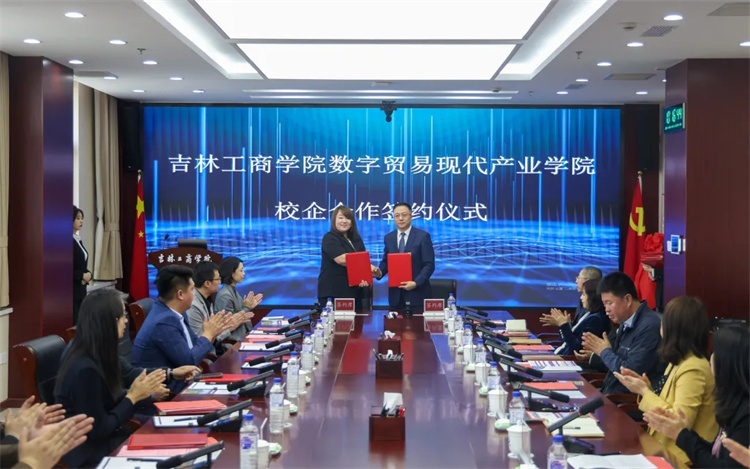 徐文同吉林省星廣傳媒有限公司總經(jīng)理許麗娜簽署了《吉林工商學(xué)院數(shù)字貿(mào)易現(xiàn)代產(chǎn)業(yè)學(xué)院校企合作協(xié)議》。
