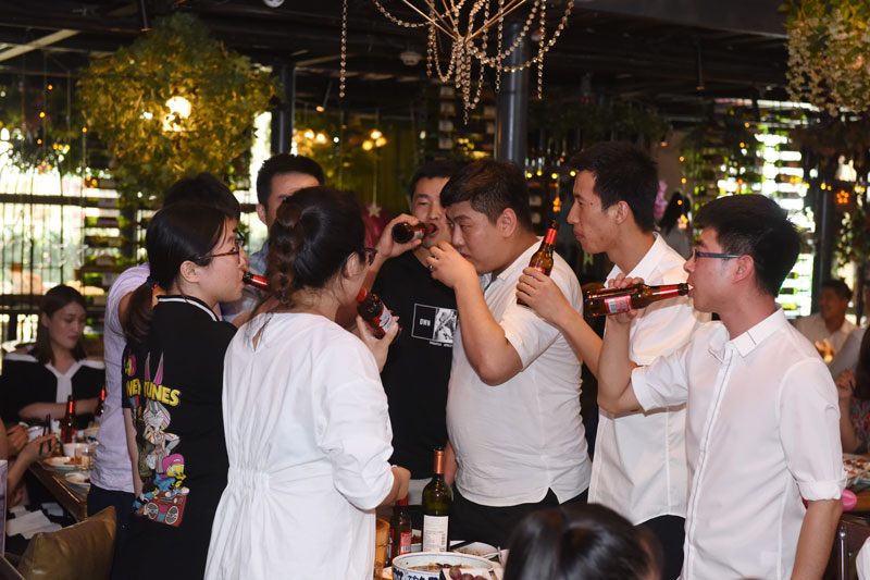 一向豪言壯語,大步向前的A+站隊喝起酒來也是毫不含糊,直接用瓶。