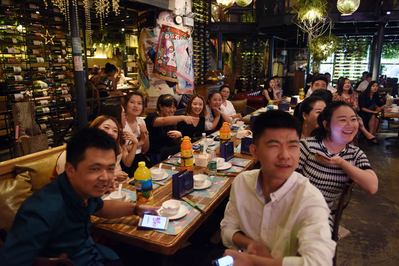 陣容強大又團結(jié)一心的星巴克團隊都在全神貫注的看著大屏幕,大家笑逐顏開,手舞足蹈。前排這位瞇著眼的帥哥,實在看不清就戴上眼鏡吧!