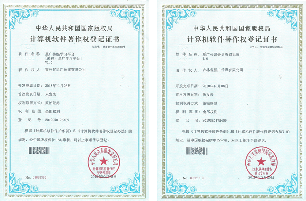 熱烈祝賀星廣自主研發(fā)的學(xué)習(xí)平臺和會員查詢系統(tǒng)獲得軟件著作權(quán)!